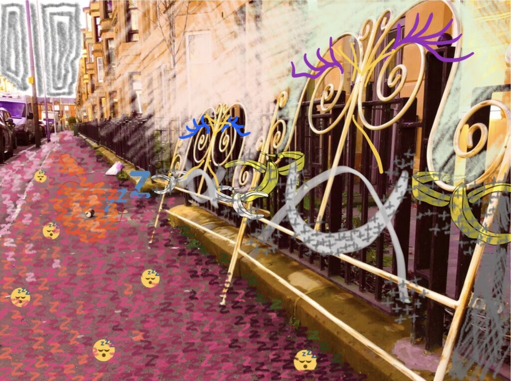 A movement vignette on Govanhill streets and its alive rococo fly tipping exterior design. Two beings, a sensing pastiche of a mover, portrayed by Alexandra Tsiapi, and a dancing camera open a live urban dialog highlighting the absurdist fantasy of both emotional and materialistic dumping. Imagine the pile of trash at my door is a …