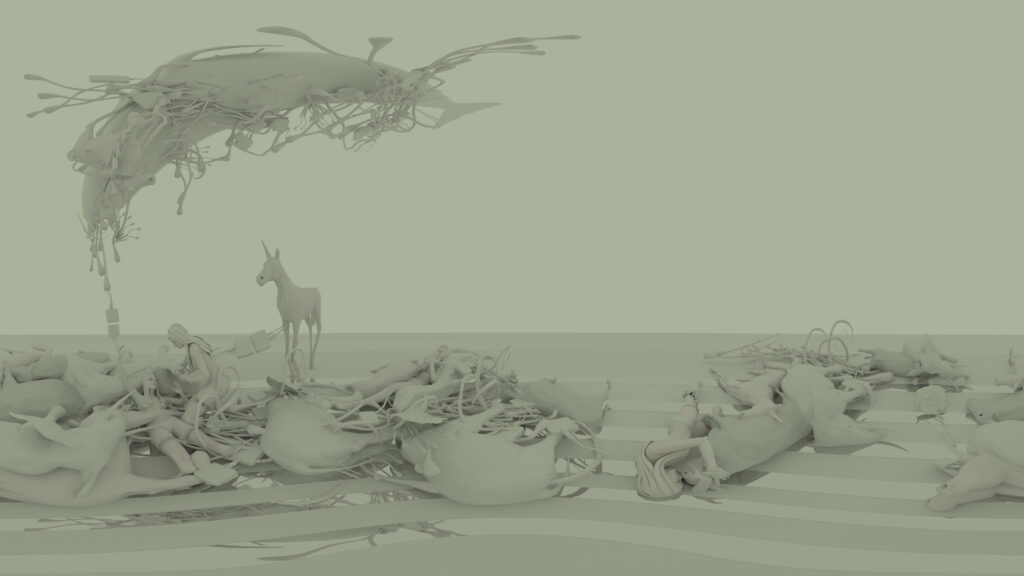 Falling is the study of a collapse. A 360 video, it proposes to build new narratives from the revival of animist thoughts. Consisting of nine ‘collapsology’ scenes created from Internet culture imaginaries, this artwork tries to interrogate a possible dismantling of the human practices of nature subjection and species classification through a search of ecofeminist …